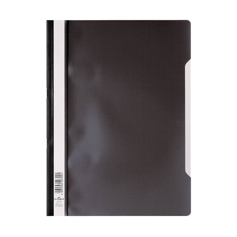 Plastový rýchloviazač s eurodierovaním umožňuje zakladanie do krúžkového alebo pákového poradača. Priehľadná predná strana nezakrýva titulnú stranu dokumentu. Popisovateľný biely zásuvný štítok je mo