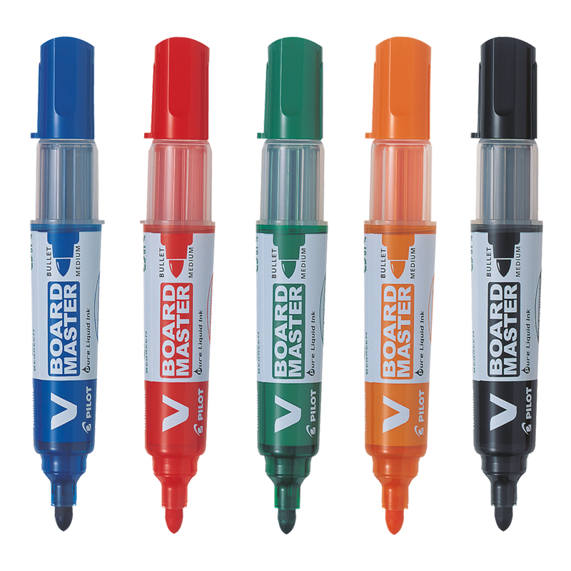Súprava popisovačov na biele tabule s vymeniteľnou náplňou. Priemer hrotu 6 mm, šírka stopy 2,3 mm.intenzívne farby, neprerušovaná stopa, bez nežiaducich škvŕnnáplň na alkoholovej bázeškvrny od atramentu na oblečení nemusia byť odstrániteľné
