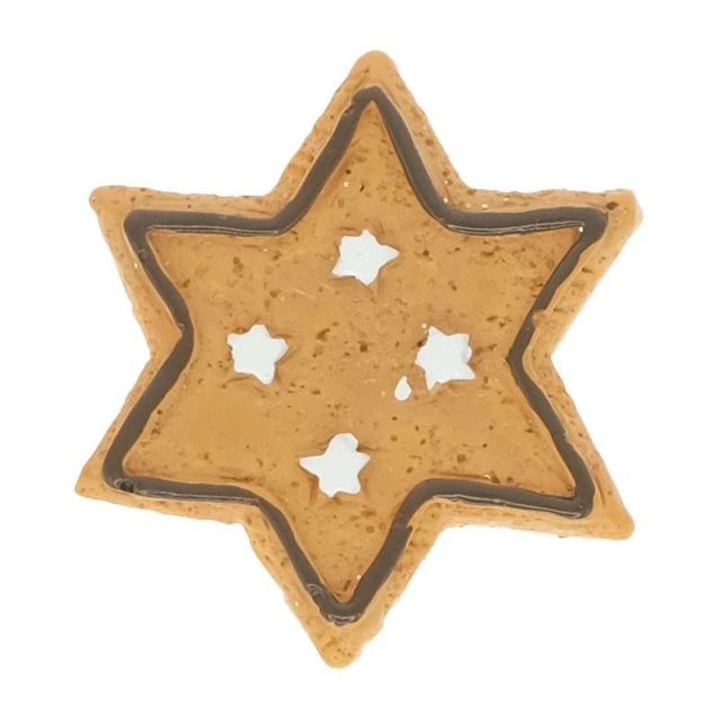 Dekoračné keramické ozdoby samolepiace, motív: medovníková hviezda. Materiál: polyresin. Rozmer: 3,1x0,4x2,8 cm. Balenie: 8 ks v balení. Cena za balenie.