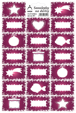 Samolepky s priestorom na vpísanie mena, ktorému darček patrí. Mix druhov a vzorov.