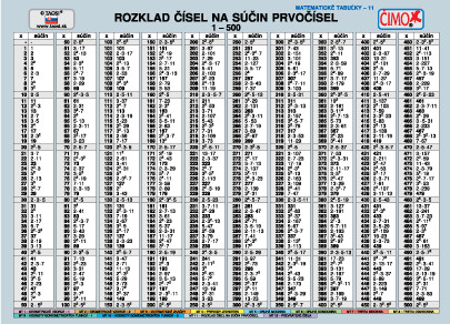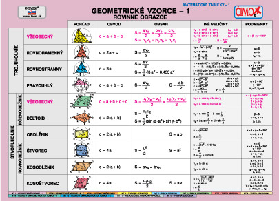učebná pomôcka určená pre žiakov základných a všetkých typov stredných škôl, obsahuje matematické tabuľky na 12-tich obojstranných kartičkách v plastovom obale, rozmer: 181x131 mm