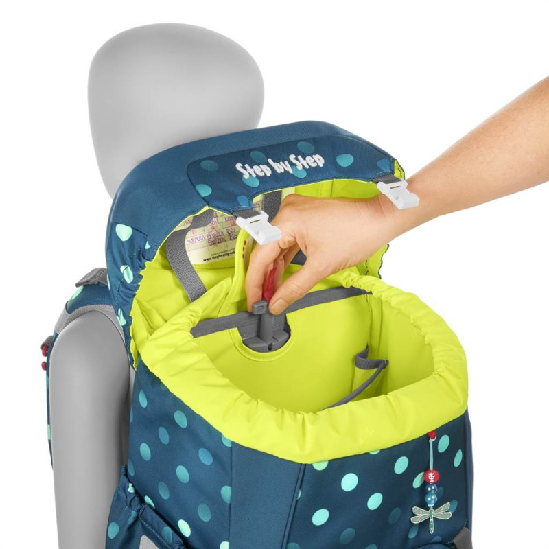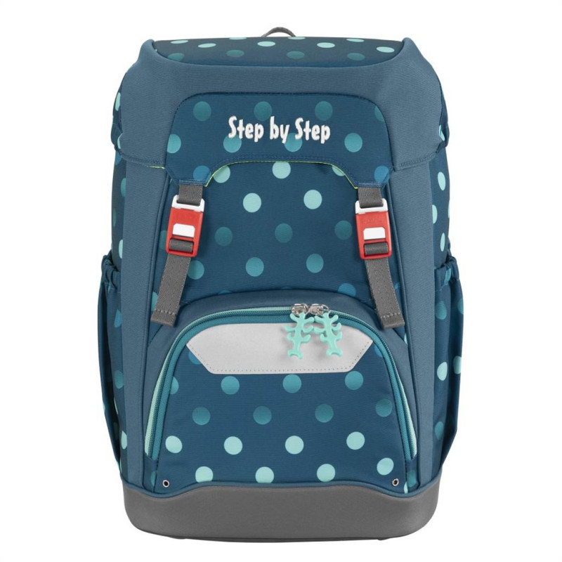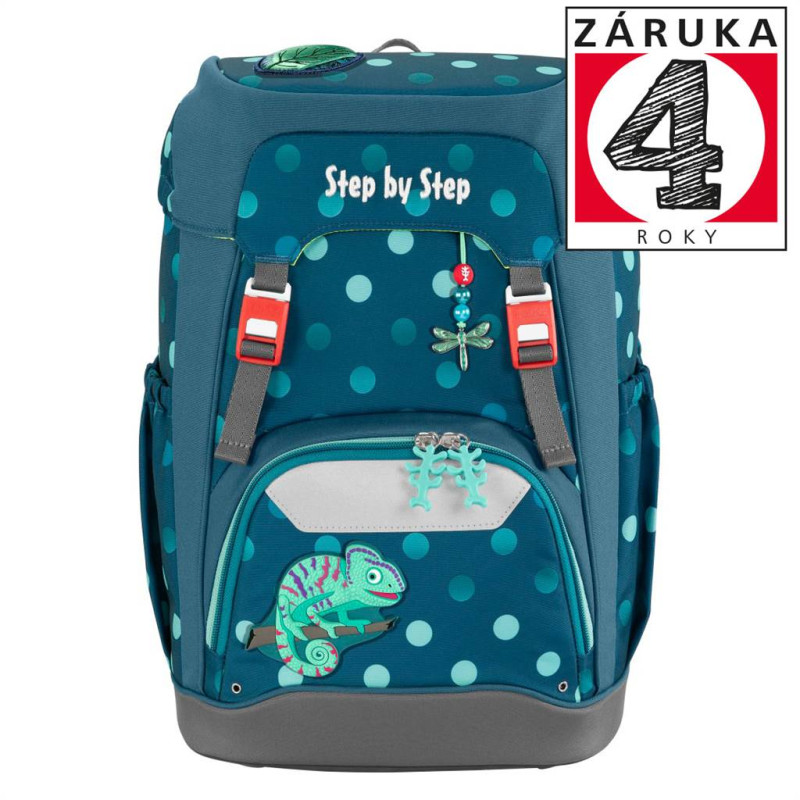 - školský ruksak Step by Step Grade je flexibilný ruksak v športovom dizajne, príjemný na nosenie - hmotnosť ruksaku je iba 950 g, vhodný pre deti už od 100 cm výšky dieťaťa - ekologický ruksak, vyrobený zo 100% recyklovaných PET fliaš (na 1 ruksak sa spotrebovalo 37 fliaš) - impregnácia PFC Free - používame impregnáciu bez škodlivých PFC chemikálií, naša impregnácia je šetrná, vyrobená na vodnej báze - školský ruksak, ktorý sa neprevracia a perfektne sedí na chrbte vďaka plynulému výškovému nastaveniu ramenných popruhov - pomocou otočného mechanizmu vo vnútri ruksaku sa zaistí presné nastavenie ramenných popruhov priamo na chrbte dieťaťa od 1. po 4. triedu - vymeniteľné 3D obrázky - 1 ks na veku ruksaku, 1 ks na prednom vrecku a ozdobná šnúrka na prednej strane ruksaku - ultra ľahká ergonomicky tvarovaná chrbtová časť s mäkkým priedušným polstrovaním, sklolaminátová konštrukcia - polstrované nastaviteľné popruhy na ramená v tvare S (nezarezávajú sa do ramien, dobre a pevne sedia a ľahko sa s nimi manipuluje) - háčiky na popruh pre uchytenie koncov popruhu - doťahovacie pásky na ramennom popruhu, slúžia k dokonalému priľnutiu ruksaku k chrbtu dieťaťa - DOKONALÉ POLSTROVANIE CHRBTOVEJ ČASTI A VÝŠKOVO A DĹŽKOVO NASTAVITEĽNÉ POLSTROVANÉ POPRUHY ZARUČUJÚ ZDRAVÝ VÝVOJ CHRBTA DIEŤAŤA, PRETO ŠKOLSKÉ AKTOVKY Step by Step ZÍSKALI CERTIFIKÁT AGR - odnímateľný výškovo nastaviteľný hrudný popruh, značková pracka YKK - odnímateľný bedrový popruh pre optimálne rozloženie hmotnosti ruksaku medzi ramená a bedrá a vycentrovanie ruksaku doprostred chrbta - reflexné plochy na všetkých viditeľných stranách ruksaku značky ORALITE (na prednej strane, bokoch a ramenných popruhoch), dostatočná bezpečnosť v šere a za tmy - pútko na zavesenie ruksaku - zatváranie na dve magnetické pracky, ľahké otváranie a zatváranie ruksaku - magnetické zatváranie je výškovo nastaviteľné, vďaka tomu je možné zväčšiť objem ruksaku - izolované predné vrecko (pre studené alebo teplé jedlo a nápoje) - bočné vrecká na fľašky s pitím s otvorom v dolnej časti; ak do vrecka vytečie tekutina, odtečie otvorom skôr než sa vsiakne do hlavného priečinku a poškodí učebné pomôcky - stabilné dno ruksaku s nôžkami pre lepšiu stabilitu, ochrana pred vlhkom a špinou - možnosť objednať pršiplášť - priestranný hlavný priečinok s vnútorným vreckom, ktorý je určený pre ťažšie predmety (napr. učebnice), zaistí sa tak rovnomerné rozloženie hmotnosti - gumičky vo veku pre umiestnenie peračníka, zaťaží ruksak z vrchu, chráni tak chrbát a zároveň šetrí priestor v ruksaku - objem: 22 l, hmotnosť: cca. 950 g, nosnosť: 7 kg, vonkajšie rozmery: h. 20 x š. 28 x v. 41 cm - PREDĹŽENÁ ZÁRUKA 4 ROKY