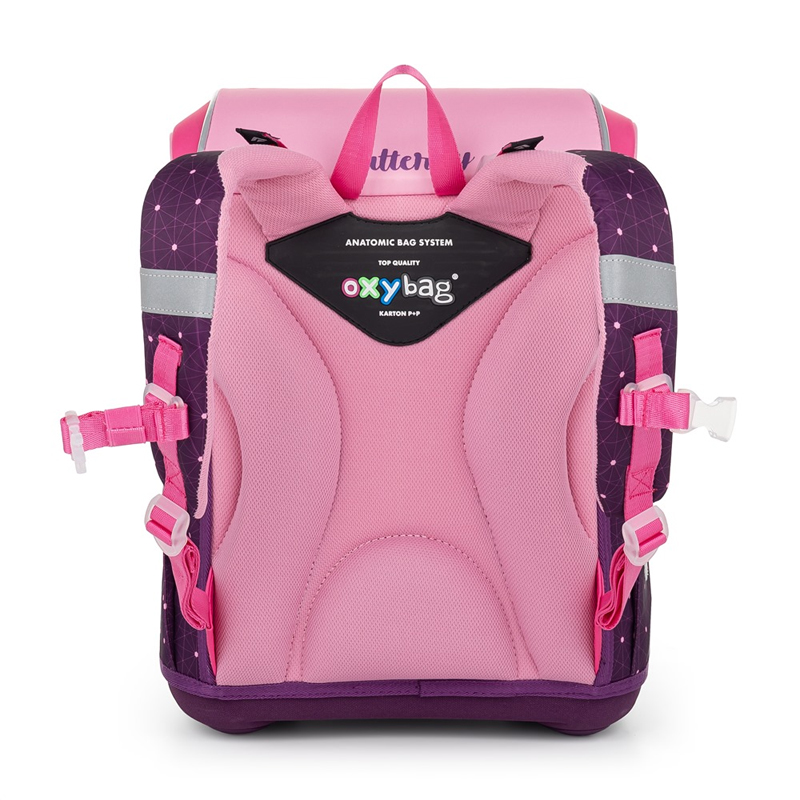 Školská aktovka Premium pre dievčatá je vhodná i pre drobnejšie prváčky. Aktovky OXYBAG sú výnimočné svojimi originálnymi licenčnými a nelicenčnými motívmi a prvákom na chrbte pekne sedia. Majú anatomicky tvarovaný chrbát a širšie mäkké polstrované ramenné popruhy, ktoré sú tvarovo prispôsobené postave detí. Popruhy tak lepšie sedia k ramenám a pomôžu ich rovnomerne zaťažiť. Polstrovanie zadnej časti je z príjemného priedušného materiálu a svojím tvarom umožňuje dostatočné odvetrávanie. Dieťa se tak pod batohom len tak nespotí. Bezpečnosť detí je podporená reflexnými prvkami zo všetkých strán vrátanie reflexného prvku na uzatváraní školskej tašky.
