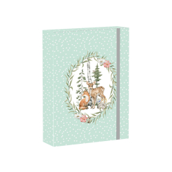 Školský box na zošity, formát A5,s motívom , zatváranie zaistené gumičkou,materiál tvrdý karton.