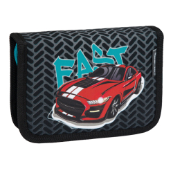 Prázdny jednoduchý peračník s jednou klopou,s gumovými úchytmi na ceruzky a perá, vreckom na suchý zips vhodným na peniaze, gumu a prepážkou s priehľadnou fóliou a rozvrhom hodín. Výška 20,0 cm