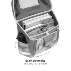 Skladá sa z 1 veľkej komory, kam sa pohodlne zmestia všetky školské potreby pre deti 1. stupňa ZŠ. V prednej časti batohu je jedno menšie vrecko pre uloženie drobnejších predmetov. Na bokoch batohu sú vrecká na zips na fľašu na pitie. Dno batohu je z pevného materiálu, chráni tým obsah pred prevrhnutím a vysypaním. Nosnosť batohu je 10kg. Objem: 22L. Rozmery: