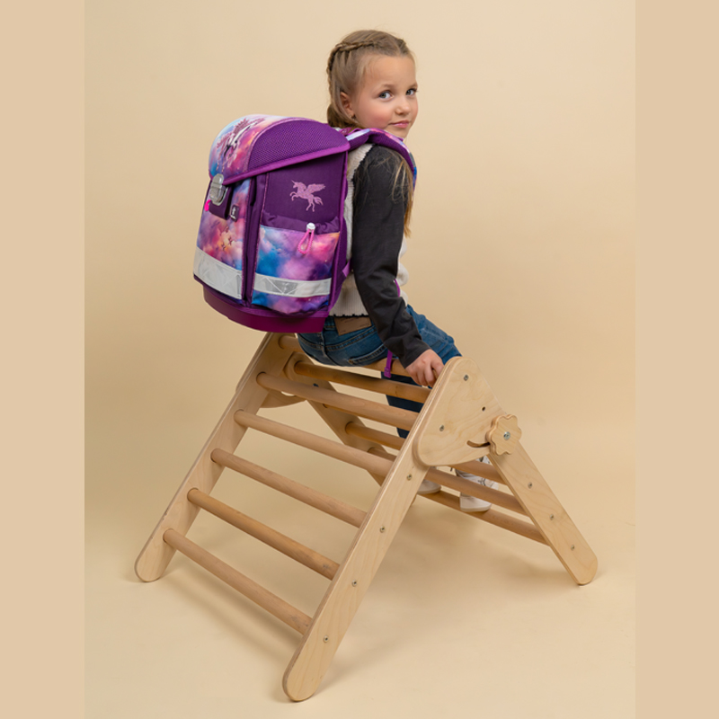 Školská taška Ars Una má silne polstrovaný ergonomický chrbát, ktorý sa prispôsobí chrbtici nových prvákov, aby vytvoril a udržal zdravé držanie tela. Mäkké ramenné popruhy školskej tašky sú nastaviteľné vo viacerých bodoch, vďaka čomu sa taška plne prispôsobí výške a postave dieťaťa.