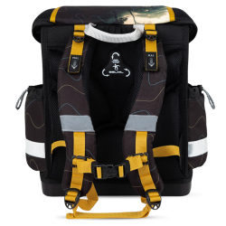 Skladá sa z 1 veľkej komory, kam sa pohodlne zmestia všetky školské potreby pre deti 1. stupňa ZŠ. Na bokoch batohu sú vrecká na zips na fľašu na pitie. Dno batohu je z pevného materiálu, chráni tým obsah pred prevrhnutím a vysypaním. Nosnosť batohu je 8kg. Objem: 27L. Rozmery: