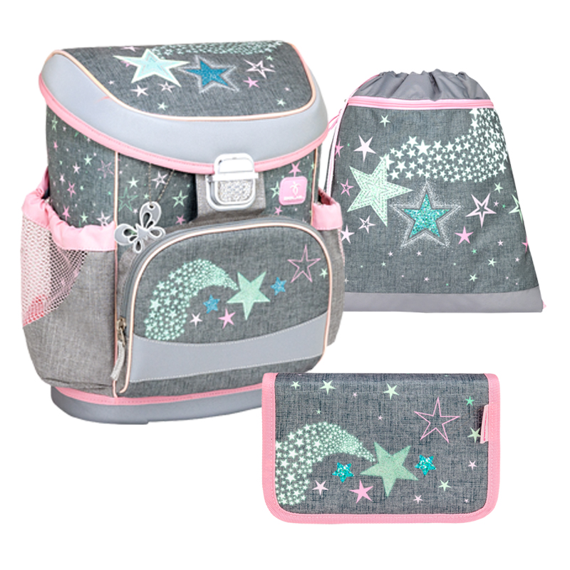 Školský set – aktovka, peračník a vrecko oxybag určený dievčatám a chlapcom vo veku 6 -10 rokov, teda prvého stupňa základnej školy. Ponúka kvalitný priestor na školské potreby aj odľahčenú konštrukciu pre pohodlnejšie nosenie. Vďaka špeciálnemu materiálu váži taška len 900 gramov.