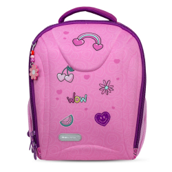 Skladá sa z 1 veľkej komory, kam sa pohodlne zmestia všetky školské potreby pre deti 1. stupňa ZŠ. V prednej časti batohu je jedno menšie vrecko pre uloženie drobnejších predmetov. Na bokoch batohu sú vrecká na zips na fľašu na pitie. Dno batohu je z pevného materiálu, chráni tým obsah pred prevrhnutím a vysypaním. Nosnosť batohu je 10kg. Objem: 22L. Rozmery: