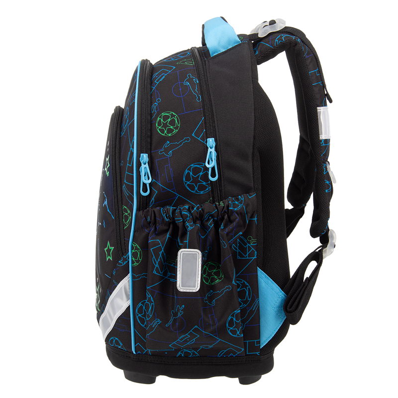 Reflexné pásiky vpredu, na bokoch aj na ramenách sú najmä pre maximálnu bezpečnosť dieťaťa v zlých podmienkach viditeľnosti. Školská taška je vyrobená z vodotesného materiálu.