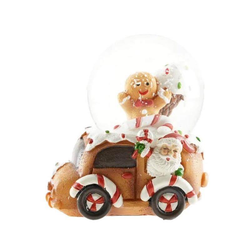 Dekoračná vianočná ozdoba - snežná guľa autíčko. Materiál: polyresin a sklo. Rozmer:6,8x6 cm