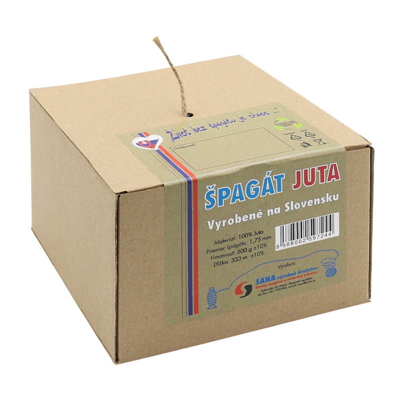 Špagát z prírodného materiálu pre použitie v kancelárii aj domácnosti, hmotnosť: 500g. Priemer: 1,75 mm, návin: 333 m (+/- 10 %).