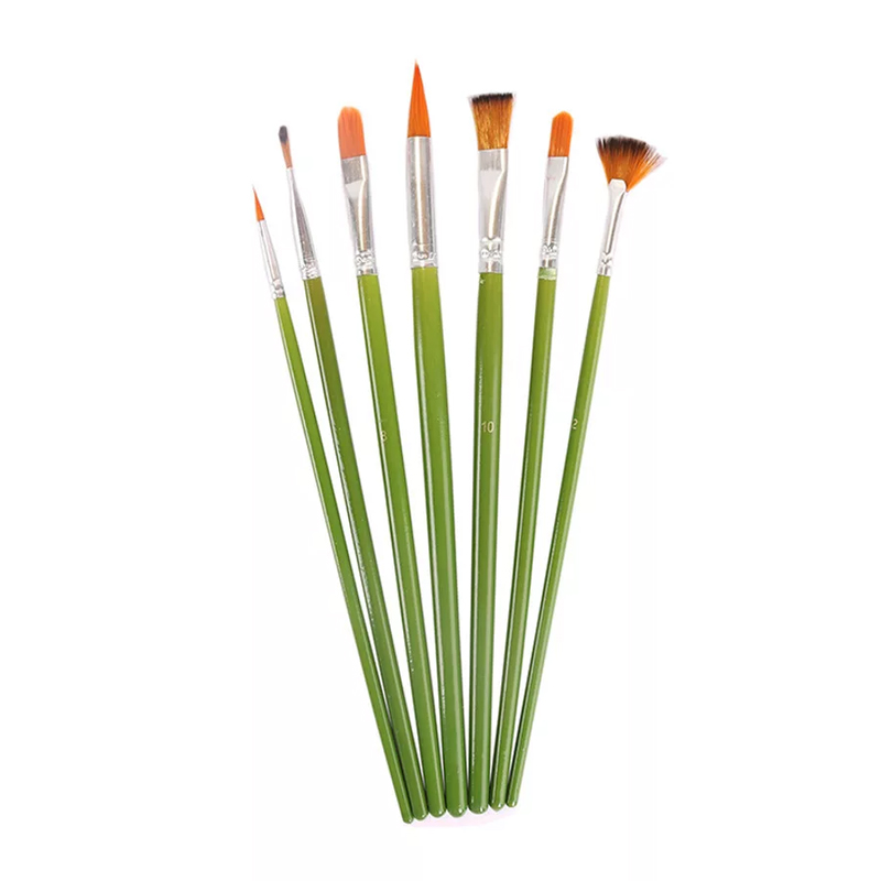 Sada rôznych druhov syntetických štetcov: 2xokrúhle č. 0,12, 2xmačací jazýček č.6,8, 1xplochý č.10, 1xrezaný č.4, 1x vejárovitý č.2