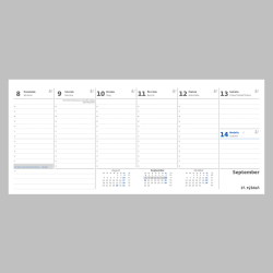 Formát kalendára: 30,1 x 13,5 cm • Kalendárium: slovenské týždenné stľpcové • Počet strán kalendára: 60 + 2 • Stojanček: so zámkom • Priestor na potlač: 30,1 x 3,5 cm • + dane a ročné obdobia, znamenia zverokruhu, 3mesačný prehľad