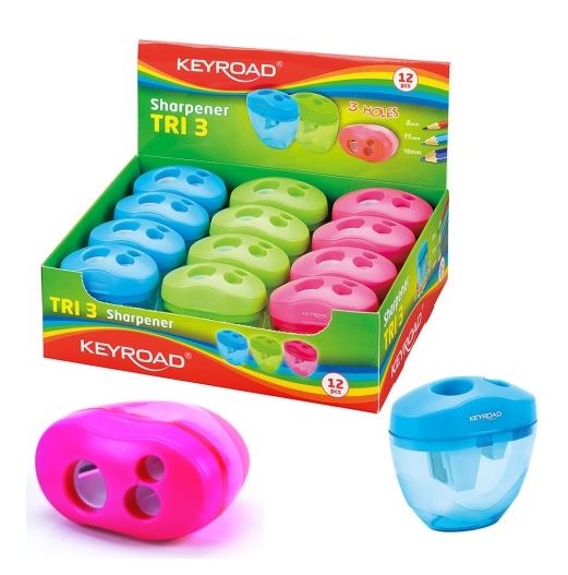 Strúhadlo na 3 rozmery ceruziek (8mm, 11mm a 16mm) s kontajnerom, ideálne aj pre jumbo pastelky a ceruzky. Kontajner s veľkou kapacitou a s praktickým viečkom. Rozmer struhátka: 65x60x35mm. Cena za kus.