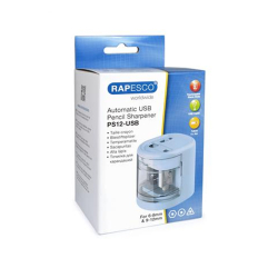 elektrické strúhadlo, 2 otvory, automatické vypnutie, keď odstránite nádobu na hobliny, rýchle a jednoduché čistenie, bezpečnostné opatrenie zabezpečí automatické vypnutie, ak sa dá dole krytka, preto môžu bez problému strúhadlo Rapesco PS12-USB používať aj vaše deti, napájanie: cez USB kábel (súčasť balenia) alebo na 4x AA batérie (nie sú súčasťou balenia)