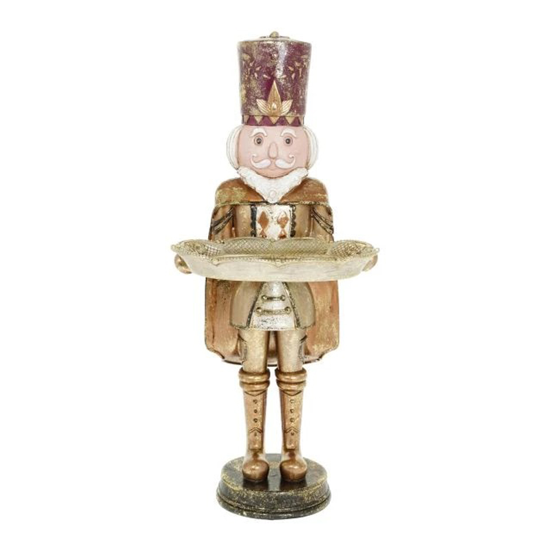 Dekoračná vianočná ozdoba - luskáčik s tanierom . Materiál: polyresin. Rozmer: 14,5x14,5x34,5 cm.