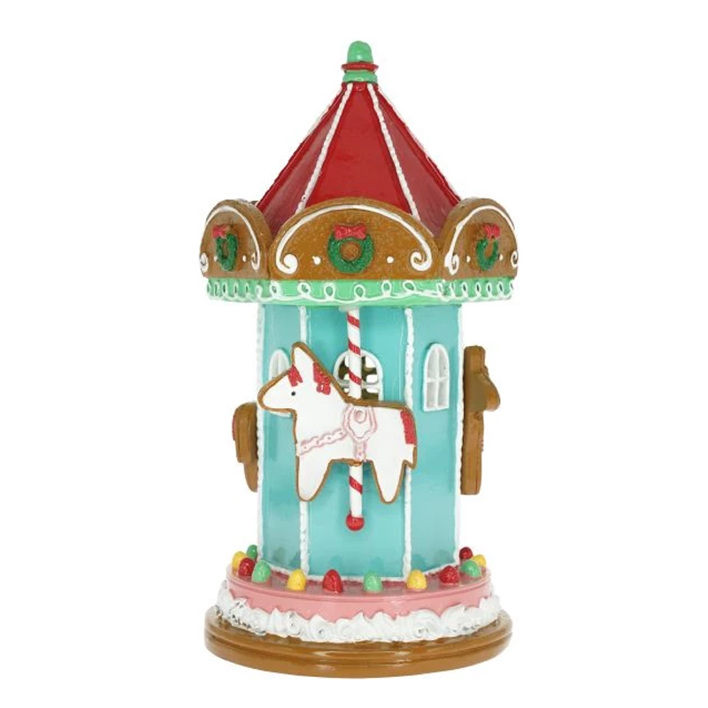 Dekoračná vianočná ozdoba - perníkový kolotoč s LED osvetlením. Materiál: polyresin. Rozmer: 12,5x11,5x22 cm