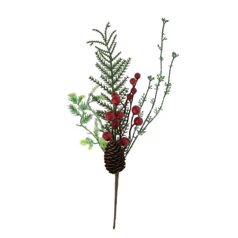 Umelá vetvička s bobuľami a šiškami oživí jesenný a zimný aranžmán. Môžete ju zakomponovať do kvetinových väzieb, vencov alebo kvetináčov. Rozmer: dĺžka 32cm.