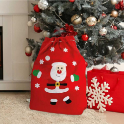 Mikulášske vrece látkové so Santom a snehom Mikulášske vrece si získa srdcia všetkých detí. Farba červená, na prednej strane ho zdobí roztomilý mikuláš. Rozmer 50x70 cm. Balené po 10ks, cena za 1ks.