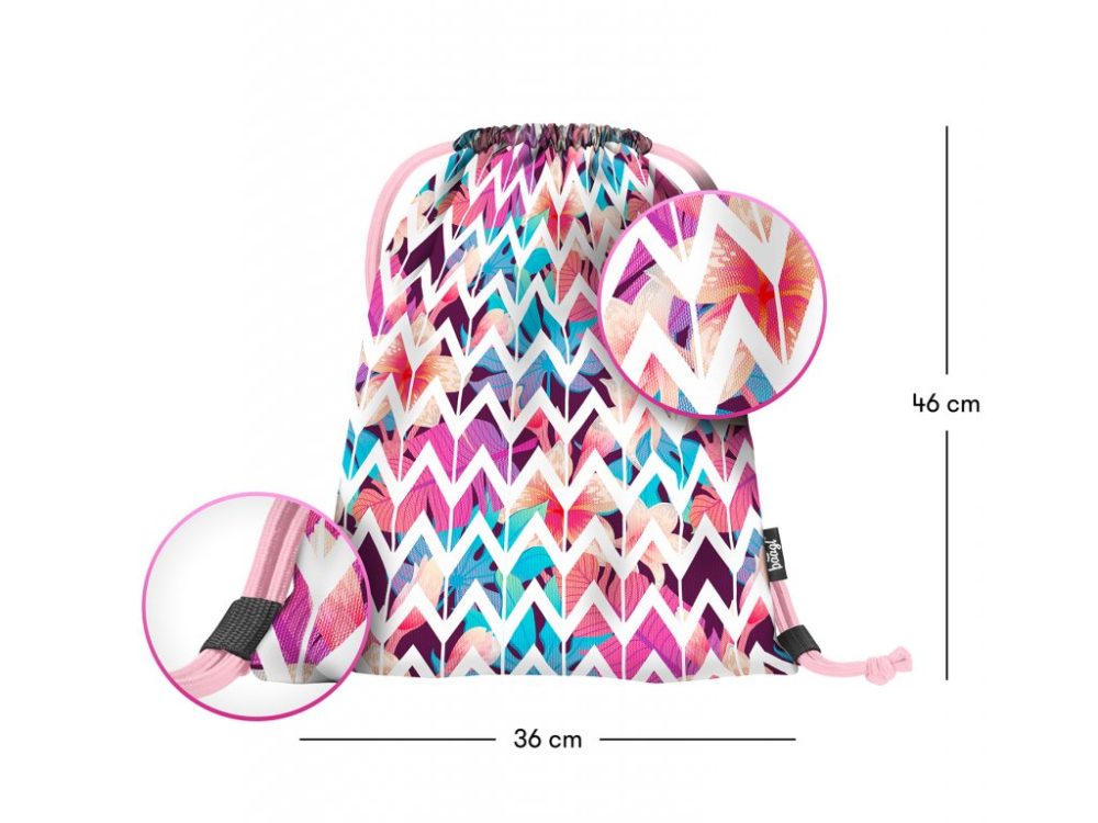 Vrecko na cvičky alebo prezúvky z pevného umývateľného materiálu. Sťahovani pomocou pevných šnúrok, ktoré zároveň umožňujú nosenie na chrbte.ROZMERY: Š: 36cm V: 46cm