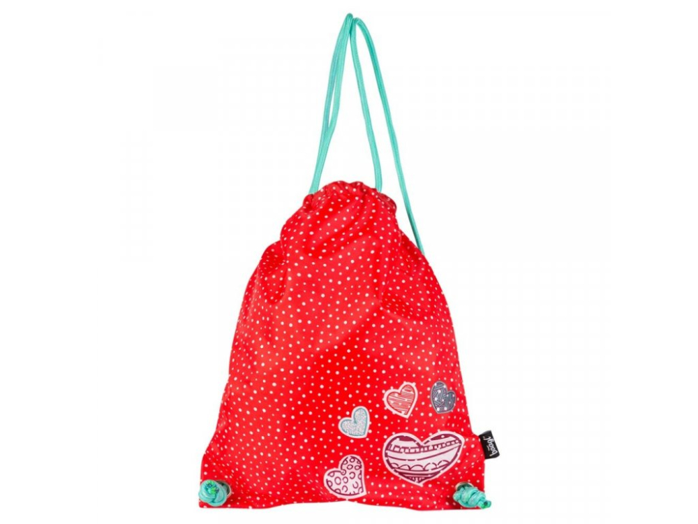 Praktické vrecko na prezúvky, alebo telesnú výchovú pre školákov. Motív : srdce. Rozmer: 42 x 34 cm