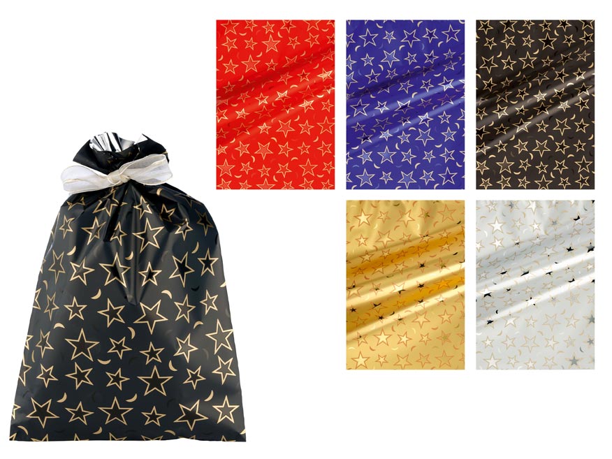 Vianočné celofánové vrecko s motívom hviezdičiek v mixe farieb. Vyrobené z luxusného celofánu s potlačou. Skvelé na balenie drobných darčekov. Vrecko môžete uzavrieť viazacou stuhou na ozdobu.Motív: hviezdyVeľkosť: 160 x 250 mmFarba: červená,