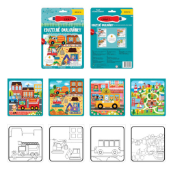 Kúzelné omaľovánky disponujú štyrmi obrázkami. Štetec sa naplní vodou a po rozotrení vody na bielu plochu obrázky získajú farbu. Po vyfarbení sa omaľovánky nechajú uschnúť a po úplnom uschnutí sú znovu použiteľné. Balenie obsahuje: 4 znovupoužiteľné obrázkové plochy z tvrdého kartónu a špeciálnou vodou plniteľný štetec.