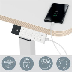 Jednoducho ovládateľný panel s detskou poistkou, 5V portami USB-C a USB-A a zobrazením výšky na monitore