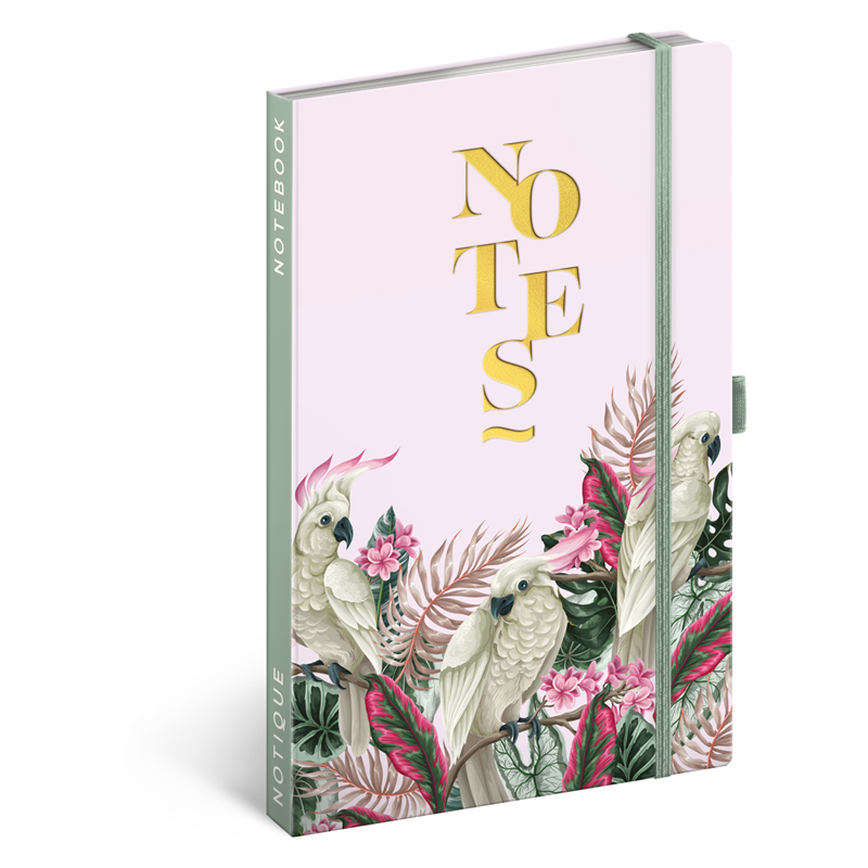 Linajkový notes v tvrdých doskách so zatváraním na gumičku a s motívom papagája Kakadu. Kvalitný linajkový notes v pevných doskách s uzatváraním na gumičku, pútkom na ceruzku a vnútorným vreckom na drobnosti. Vo vnútri nájdete 172 bodkovaných strán na žltom papieri na zapisovanie všetkých vašich nápadov. Linajkový zápisník môžete použiť ako denník, na zapisovanie hlbokých myšlienok alebo pracovných poznámok. Väzba: tuhá knižná s gumičkou a pútkom na ceruzku. Rozmer: 13x21 cm. Počet strán: 172.