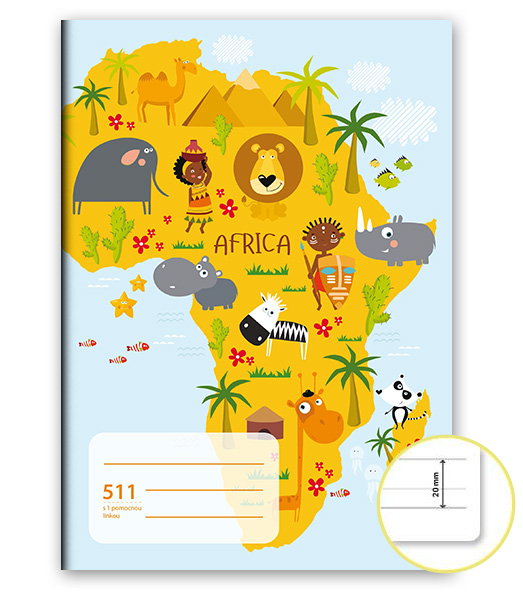 Školské zošity formát A5 z bezdrevného papiera, mäkká väzba, 10 listov, linkované 20 mm s pomocnou liniatúrou 6 mm.