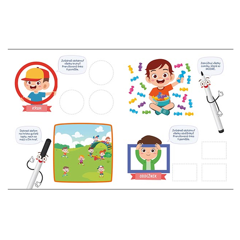 Zošit obsahuje 22 stierateľných strán s úlohami na trénovanie predškolských zručností. Fixka je súčasťou balenia. Rozmer: 285 X 230 X 17 mm