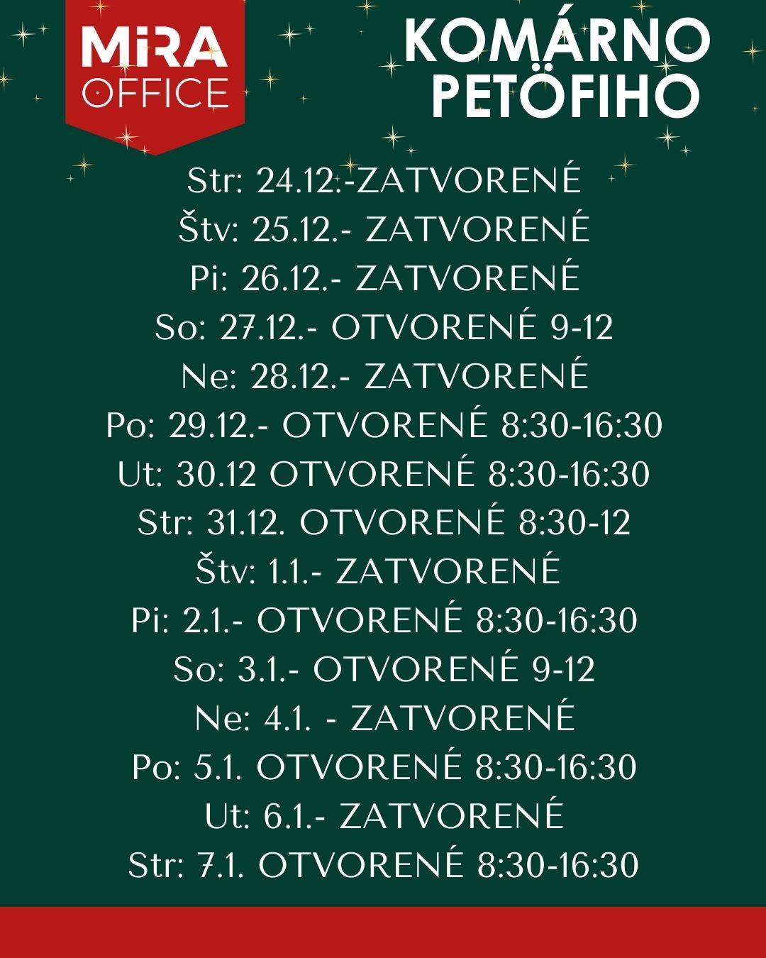 Po-Pi: 8:00-17:30 So: 9:00-12:00